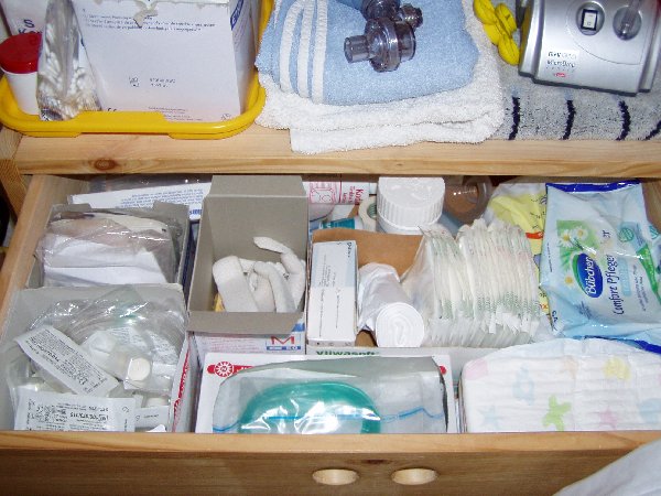 In der Schublade finden u.a. die Notfallsachen ihren Platz.