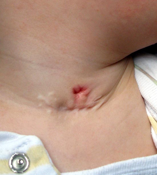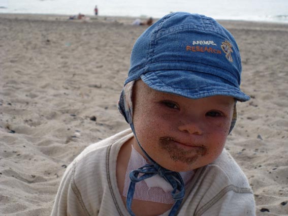 So Mädels, es wird ernst, am Mittwoch wird das Tracheostoma verschlossen. Ich erwarte einfach mal, das alles gut geht, morgen Abend gehen wir ins KH. Die Aufklärung heute war aber doch mal wieder krass, denn die möglichen Folgen der Bronchoskopie und Schnippeln an der Trachea sind ja genau die, weswegen wir das Tracheostoma haben… Hier noch mal ein Foto vom Stoma, wie es jetzt aussieht und vom super fitten super süßen Willi, mit dem wir uns sogar an den Strand getraut haben, allerdings für mich recht unentspannt, weil eben doch Panik wegen des Sandes … Aber nächsten Sommer dann im Planschbecken und Sandkiste, bitte bitte! Ich melde mich nach der OP und dann verschwinden wir wahrscheinlich langsam aber sicher aus diese Forum und treiben uns endlich bei den Kindern im Down-Syndrom Foren herum
